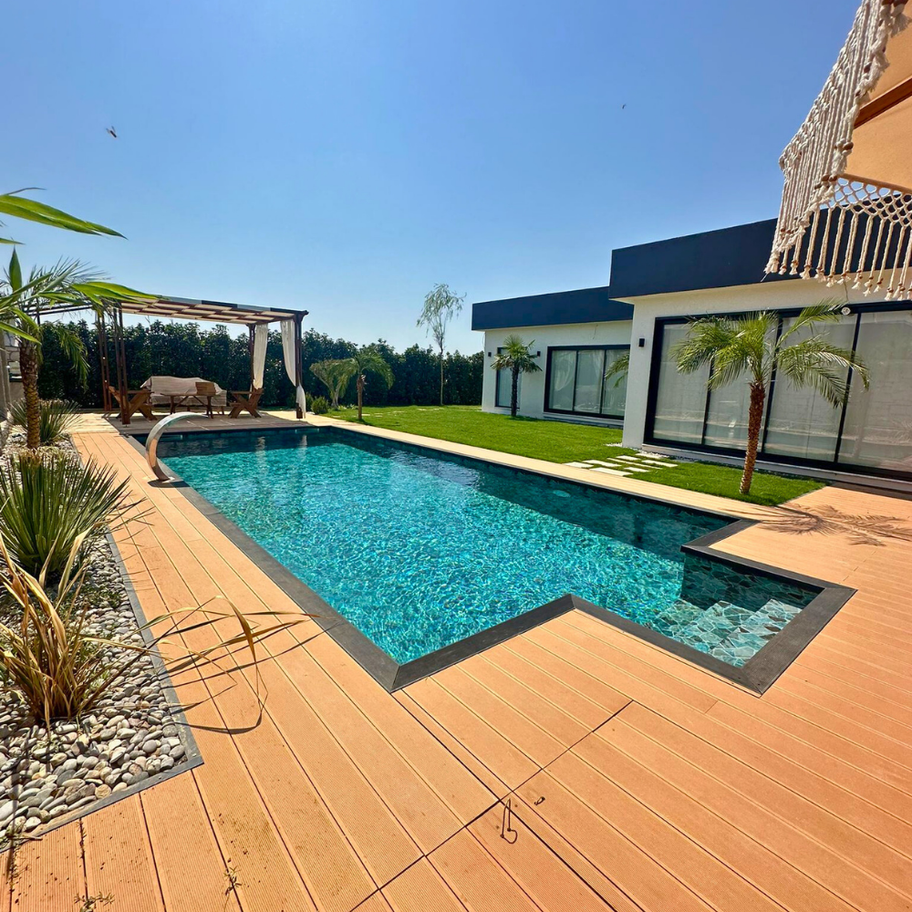 Modern tasarımıyla bahçenize şıklık katarken, uzun ömürlü yapısıyla güvenli ve keyifli bir kullanım sunuyor. Gümüş Havuz güvencesiyle hayata geçirilen bu proje, yazın serinliğini ve şıklığı bir arada yaşatıyor.